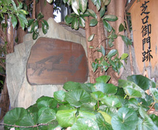 城門は橋の北詰を石垣で囲って枡形とし、橋のたもとの冠木門から枡形に入って右に曲がると、渡櫓があって堅固な門扉が設けられていました。しかしこの芝口御門は建築後十五年目の享保九年(一七二四)正月に焼失して以来、再建されず、石垣も撤去され、芝口橋は新橋の旧称に復しました。